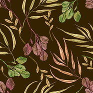 Botânica sofisticada, com folhagens em tons suaves sobre fundo escuro que destacam elegância e modernidade. Ideal para composições versáteis e cheias de personalidade.