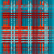 Estampa digital com efeito xadrez, formado através de linhas em tons azuis e laranjas