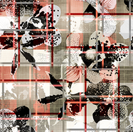 Black and white orchids connect to an irregular grid, overlapping a plaid background, resulting in an effect with beige and red tones. The file is well-organized, with layers separated by type of element and effects for easy editing. Orquídeas em preto e branco conectam-se a um grid irregular, sobrepondo um fundo xadrez, resultando em um efeito com tons de bege e vermelho. O arquivo está bem organizado, com camadas separadas por tipo de elemento e efeitos para fácil edição.